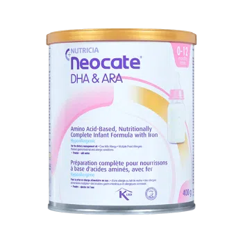 Neocate® DHA & ARA infant formula, designed for the nutritional management of individuals from birth to 12 months with cow milk allergy (CMA), multiple food allergies (MFA) and related GI and allergic conditions.